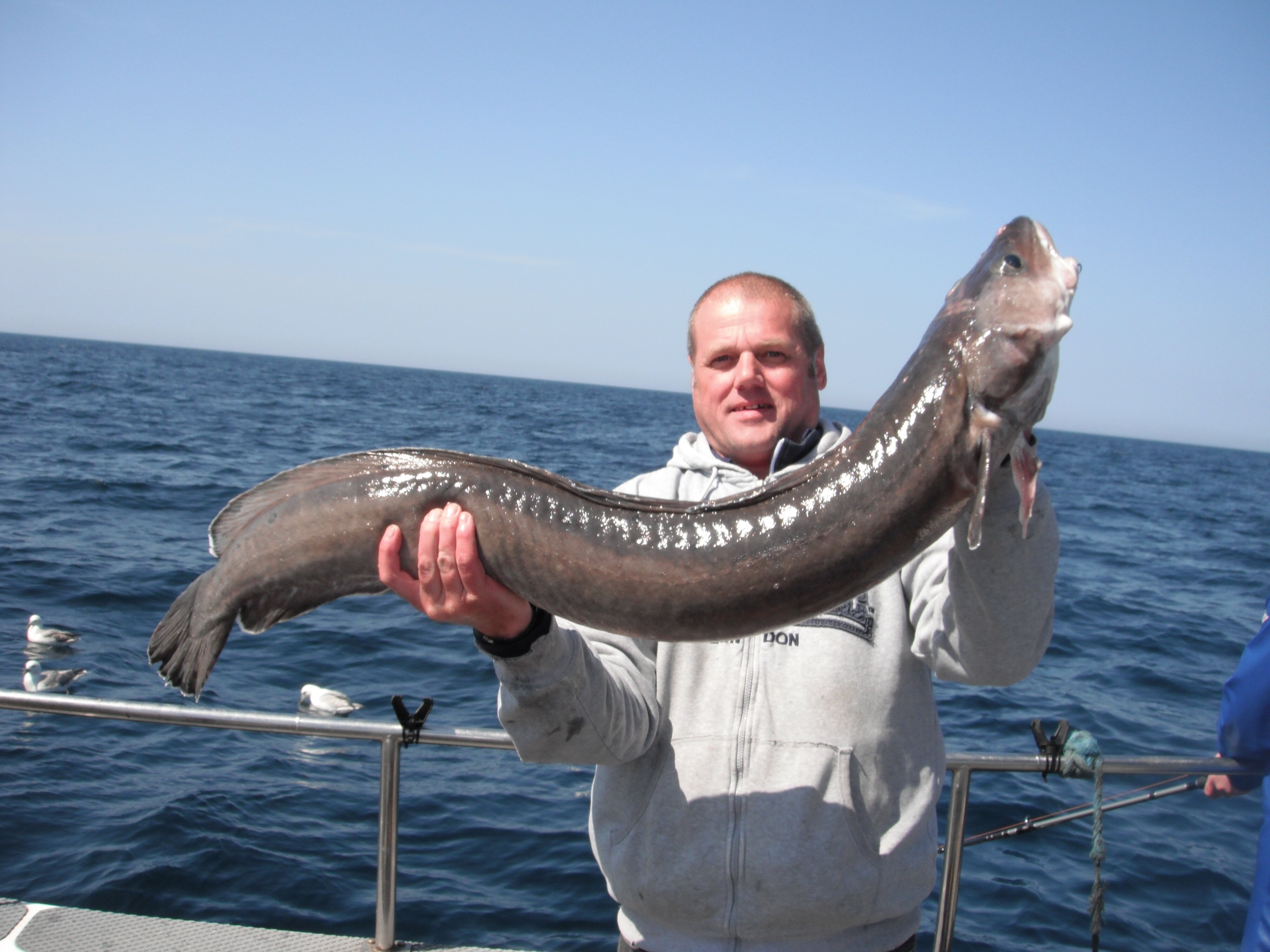 Monday and Tuesday saw us travelling well off covering a lot of miles, to find clearer waters. We finally found it nearly 30 miles offshore. Both days saw us getting amoung the fish on shads. Both cod and ling into double figure this weekend, the biggest a belting ling of 26lb.